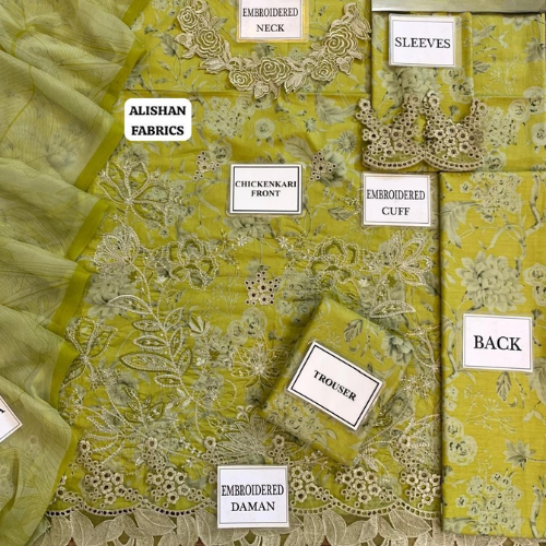 3 piece luxury embroidered lawn collection. women unstitched dress IZ-0127 NK