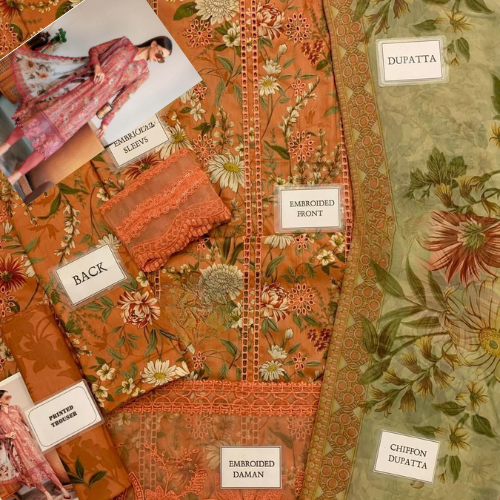 3 piece luxury lawn collection. women unstitched dress MB-0126.